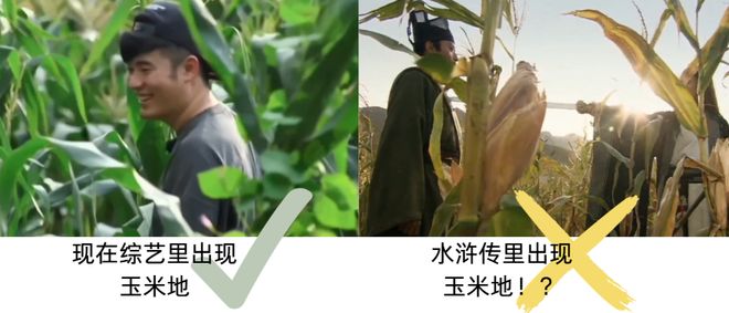 除了《水浒传》,其他历史剧里也常常出现“穿越”的玉米。玉米“身兼数职”,一会儿在《三国演义》剧组里扮演军粮,一会儿又跑去唐朝,成为《神探狄仁杰》剧组里“丰收”的象征。这也从侧面反映出,玉米的确是百姓们喜闻乐见的食物。