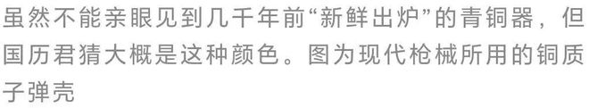 但实际上,“新鲜出炉”的“青铜器”并不是这个颜色,而是大体呈现出或黄或白(棕黄、橙黄、赤金、金黄、银白、银灰等)的颜色。因为青铜器(也叫铜器)本身是红铜与其他化学元素锡、铅等的合金。