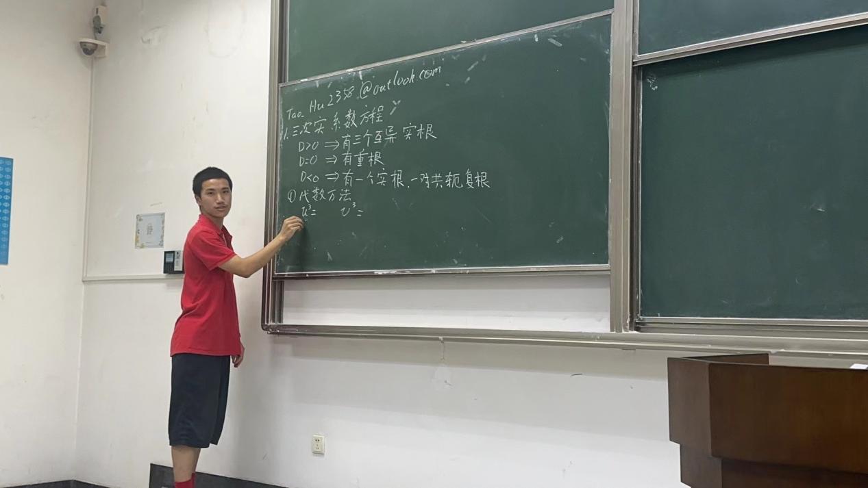 “为学应须毕生力”,奋斗一生的目的是奉献社会和他人。胡韬同样热心公益,参与了很多志愿服务活动和公益活动。他参与“微光”公益支教活动,在春节期间,帮助一位高一学生显著提高学业成绩。在学期内,他利用课余时间,编写CMC备考资料、期末复习资料、每日一题等资料十余份。两年来,他坚持参加各类公益活动,总工时达到150小时以上,在奉献集体的过程中,他不断地感受到自身的价值,也培养了综合能力。作为数试2024级的助教和朋辈辅导员,他致力于帮助同学们更好地适应大学生活。对他而言,准备习题课以及组织谈心活动是全新的体验。胡韬谈道,当年他在适应大学生活的过程中,有经验也有教训,如今他担任朋辈辅导员,希望能用自己的所感所悟帮助到更多学弟学妹。