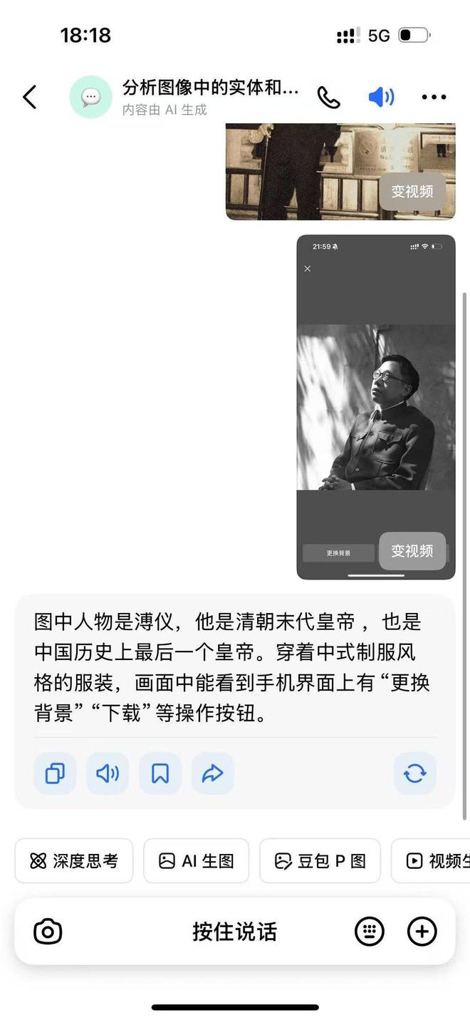 付强和溥仪到底有多像?付强曾经拍过一张在天坛公园的照片,放到AI工具中请它识别图中的人物是谁。最后,AI告诉他,这是溥仪。